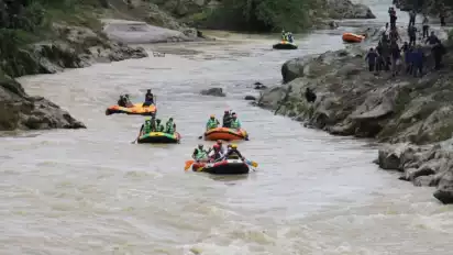 Kunjungi Desa Wisata Buluh Duri, Sandiaga Uno Rafting di Sungai Bah Bolon