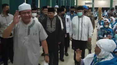 Palembang, Sumatera Selatan - Sejumlah 449 calon jemaah haji kloter pertama asal Sumatera Selatan, dilepas Gubernur Sumsel, Herman Deru, Jumat (24/06)