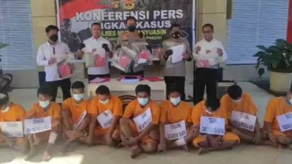 Musi Banyuasin, Sumsel - Sembilan orang pembunuh bayaran berhasil ditangkap aparat kepolisian unit Reskrim polres Musi Banyuasin, Sumatra selatan, Selasa (27/6/2022).