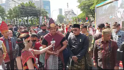Kemudian, tampak hadir Bupati se-Sumatera Utara dengan mengenakan pakaian adat khas daerahnya masing-masing, juga membuat Hut Kota Medan kali ini berbeda.