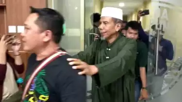 Bandar Lampung, Lampung - Salah satu pengikut yang juga pengurus dalam kumpulan Ketua Syiar Seluruh Dunia Khilafatul Muslimin Bandar Lampung, AB (Abu Bakar) ditangkap Polda Lampung pada Senin (4/7/2022).