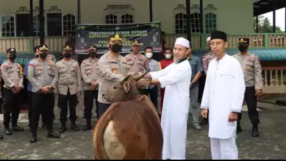 Penyerahan hewan kurban tersebut dilakukan oleh Kapolresta beserta Wakapolresta Kompol Very Edulfandria Noor, Kabag Ops Kompol Reza Anugerah dan Pejabat Utama Polresta Tanjungpinang.