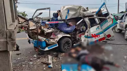 Deliserdang, Sumatera Utara - Kecelakaan maut terjadi di Jalan Lintas Sumatera KM 33/34, Desa Sukamandi Hilir, Kecamatan Pagar Merbau, Delisersang, antara angkot kontra truk kontainer. Akibatnya 2 orang penumpang bus tewas di tempat kejadian dan 9 lainnya mengalami luka-luka.
