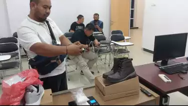 Satu paket Narkoba jenis sabu yang dikemas dalam kardus sepatu merk Nike Zoomflykn Stre dan Jackson, di dalam sepatu tersebut dua paket yang diduga sabu dalam plastik bening dengan berat berat total 203 gram yang rencana akan dikirim menggunakan pesawat Citilink tujuan Kendari Sulawesi Tenggara pukul 13.50 WIB pada Rabu (13/7/2022).