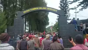 Karo, Sumatera Utara - Masyarakat adat Desa Partibi Lama, Kecamatan Merek, Kabupaten Karo melakukan aksi unjuk rasa di Markas Komando Distrik Militer (KODIM) 0205 Tanah Karo, Jumat (15/7/2022). Dalam aksi unjuk rasa tersebut perwakilan masyarakat adat Desa Partibi Lama menyampaikan orasi dan aspirasinya di hadapan Komandan Kodim 0205/TK beserta jajarannya, agar segera menarik pasukannya dari lahan adat milik Desa Partibi Lama.