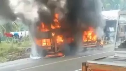 Truk Pengangkut Kiriman Paket Terbakar di Jalinsum Padang - Bukittinggi