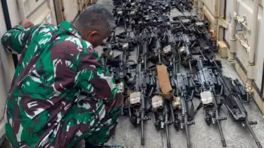 Senjata api dalam kontainer tersebut, digunakan untuk latihan militer Garuda Shield antara TNI AD dengan US Army, pada Agustus 2022 mendatang. (puj/mii)