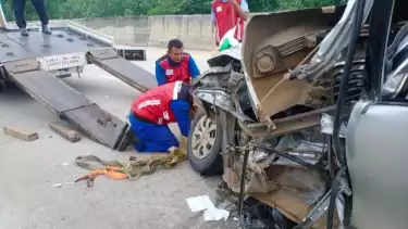 Bandar Lampung, Lampung - Dua orang tewas dalam kecelakaan minibus Toyota Avanza BE 1699 WW, menabrak Truk Fuso tanpa identitas terjadi di Jalan Tol Trans Sumatera (JTTS) Km 102+200 Jalur B di Jalan Tol Ruas Bakauheni-Terbanggi Besar (BAKTER), Kecamatan Natar, Kabupaten Lampung Selatan, Lampung, Selasa (26/7/2022) pukul 10:52 WIB.