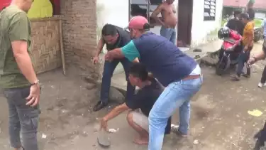 Medan, Sumatera Utara - Detik-detik Unit I Satresnarkoba Polrestabes Medan bersama Unit Reskrim Polsek Patumbak menggerebek kampung narkoba, di Jalan Perjuangan, Desa Marindal II, Kecamatan Patumbak, mendapati perlawanan dari pengedar dan pemakai narkoba, Jumat (5/8/2022) sore.
