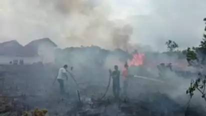 Kobaran api dengan cepat menghanguskan lahan yang berdampingan dengan rumah warga sekitar, karena di lokasi kebakaran ditumbuhi rumput ilalang yang sudah mengering akibat cuaca panas.