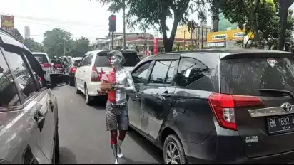 Selain itu, pengendara yang merasa simpatik dan terhibur dengan penampilan pria kelahiran Palembang ini, sembari memberi uang kepada manusia merah putih.