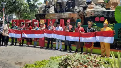 Pantauan awak media di lokasi, dalam kegiatan pembagian Bendera ini, tampak beberapa warga mengenakan pakaian adat dari beberapa daerah di Indonesia.