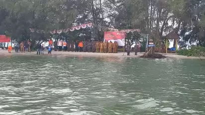 Riau - Perayaan Dirgahayu Republik Indonesia ke-77 TNI Angkatan Laut melaksanakan pengibaran bendera merah putih di bawah laut di 77 titik yang dilaksanakan serentak di seluruh Indonesia.