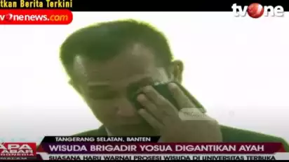 Namun, dari pantuan tvonenews.com, ketika sang ayah Birgadir J menerima ijazah Yoshua secara simbolis yang lulus dari UT, tampak ayahnya tak kuasa menahan tangis. Bahkan, ia tak henti-hentinya menghapus air matanya dengan sapu tanggannya.