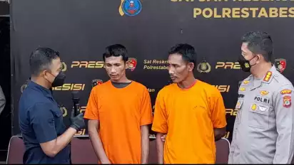 Medan - Polrestabes Medan menangkap dua pria pembunuh seorang ASN Kabupaten Asahan yang ditemukan tewas di sungai, Desa Sampali, Kecamatan Percut Sei Tuan, Kabupaten Deli Serdang, Sumatera Utara.
