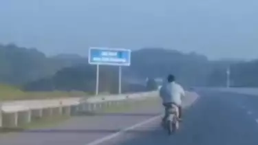 Aksi pengendara sepeda motor tersebut pun viral di media sosial melalui rekaman video berdurasi 19 detik yang memperlihatkan seorang pengendara sepeda motor matic sedang santai melewati Jalan Tol Pekanbaru-Dumai.