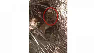 Langkat, Sumatera Utara - Viral di media sosial video berdurasi 2.06 detik, seekor harimau bersembunyi di rumpun pohon kelapa sawit di Desa Bukit Selamat Kecamatan Besitang Kabupaten Langkat pada Senin (2(/8/2022).