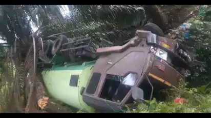Aceh Tamiang - Mobil Mitsubishi Fuso Tangki Bermuatan CPO seruduk sekaligus 4 kendaraan dan seorang pejalan kaki di Jalinsum Desa Bukit Seumadam, Kecamatan Kejuruan Muda, Kabupaten Aceh Tamiang, Aceh, Akibatnya, 2 orang meninggal dunia.