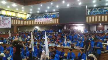 Demo Tolak Harga BBM, Mahasiswa UIN Ar-Raniry Banda Aceh Duduki Ruang Paripurna DPR Aceh