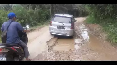 Sejumlah titik ruas jalan kabupaten Aie Amo - Malaro, Kecamatan Kamangbaru, Kabupaten Sijunjung, mengalami rusak parah