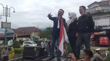 Aceh Tenggara, Aceh - Sekelompok mahasiswa yang mengatasnamakan Aliansi Sepuluh Pemuda, berunjukrasa di depan gedung DPRK Aceh Tenggara (Agara), Jalan Ahmad Yani, Kutacane. Massa memprotes DPRK yang mengeluarkan rekomendasi tunggal kepada Sekda Aceh Tenggara dalam menentukan siapa yang berhak menduduki posisi Pj Bupati Kabupaten Aceh Tenggara, Kamis (8/9/2020).