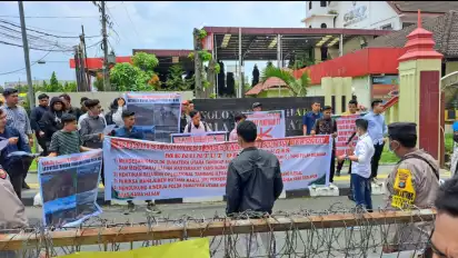 "Namun sampai saat ini pelaku HS belum juga ditangkap Polres Langkat. Oleh karena itu kami mendatangi Polda Sumut berunjuk rasa mendesak pelaku HS untuk ditangkap mempertanggungjawabkan perbuatannya," katanya.