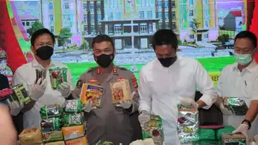 Total barang bukti narkotika jenis sabu yang diamankan sebanyak 35 Kg dan 5.000 butir happy five, jika dinominalkan barang bukti haram tersebut berkisar Rp37 Miliar.