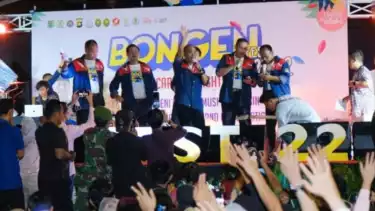 Musi Banyuasin, Sumsel - Festival Bongen Tahun 2022 membuat ribuan masyarakat Kabupaten Musi Banyuasin tumpah ruah penuhi Jalan Kolonel Wahid Udin Sekayu, atyau tepatnya di depan Rumah Dinas Bupati Muba, Sabtu (24/9/2022) malam.