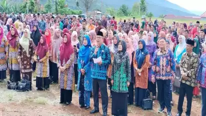 Kerinci, Jambi - Perade Batik Jambi di lapangan kantor Bupati Kerinci di kawasan Bukit Tengah, Kamis (29/09/2022). Acara ini dihadiri 1.300 Aparatur Sipil Negara (ASN) lingkup Pemerintah Kabupaten Kerinci.
