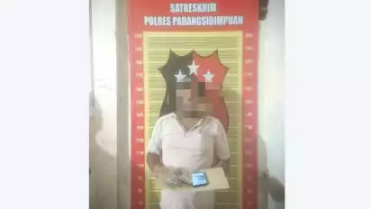 Padang Sidempuan, Sumatera Utara - Sabar Menanti Lase (40) warga Bargot Topong, Kecamatan Padangsidimpuan Batu Nadua, Padang Sidempuan, Sumatera Utara, ditangkap Tim Tekab Satreskrim Polres Padang Sidempuan, Senin (3/10/2022) di dalam angkutan kota. Sabar, ditangkap atas kasus judi togel.