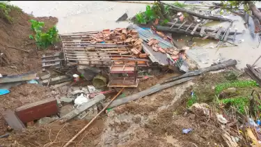 Empat Rumah Warga Hancur Akibat Longsor Tepian Sungai Musi