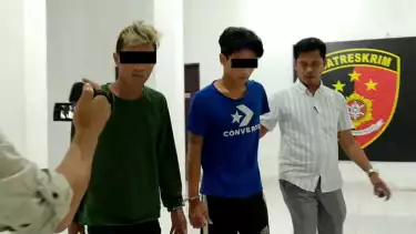 Medan, Sumatera Utara - Petugas Unit Pidum Satreskrim Polrestabes Medan mengamankan dua orang pelaku spesialis jambret yang aksinya viral di sejumlah wilayah Kota Medan. Kasat Reskrim Polrestabes Medan, Kompol Teuku Fathir Mustafa menjelaskan, kedua pelaku merupakan warga Kecamatan Medan Perjuangan bernama Muhammad Asril Mahendra alias Acil (22) dan Dimas Pramuja Hidayat alias Dimas (19).