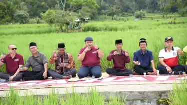 Tapanuli Selatan, Sumatera Utara - Ditengah hamparan sawah, Bupati Tapanuli Selatan (Tapsel) H. Dolly Putra Parlindungan Pasaribu "Ngopi Bareng" bersama masyarakat adat HATABOSI di Dusun Bonan Dolok, Desa Tanjung Dolok, Kecamatan Marancar, Kabupaten Tapsel, Jumat (14/10/2022)