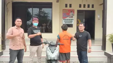 Bakauheni, Lampung - Jeni Eko Priono (24 tahun), pelaku pencurian sepeda motor berhasil ditangkap polisi setelah terjatuh saat terlibat aksi kejar-kejaran. Pelaku kepergok mencuri sepeda motor di Pasar Bakauheni pada Senin (17/10/2022), yang langsung dilakukan pengejaran oleh anggota Polsek Penengahan, Lampung Selatan.