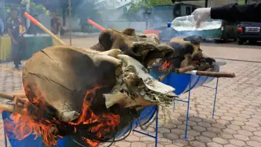 Barang Bukti Kerangka Gajah di Musnahkan oleh Petugas