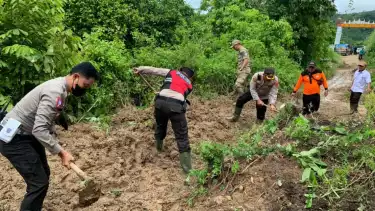 Bantu Korban Bencana, Kapolres Pesawaran Lampung Ikut Nyangkul Bersihkan Material Longsor