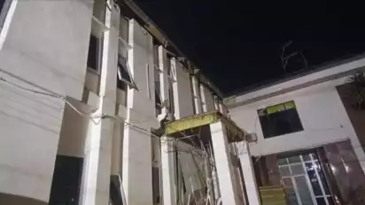 Pantauan tvOnenews.com saat mendatangi lokasi tersebut, terlihat pinggiran atap yang rusak dan jatuh ke halaman gedung. Terlihat besi baja ringan yang menompang atap itu pun berjatuhan. Ditambah, serpihan bahan bangunan itupun berserakkan di halaman gedung kantor.