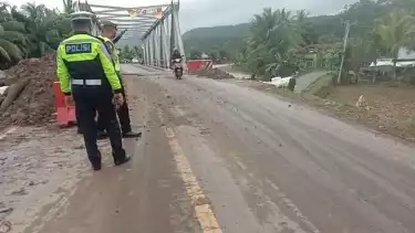 Meski sudah dapat dilalui, lanjut Brigpol Sigit, para pengguna jalan harus tetap berhati-hati karena kondisi jalan licin karena adanya sisa timbunan material di badan jalan. Selain itu, untuk lubang besar menganga di Jembatan Laay pun telah ditimbun dan di atasnya terpasang plat besi.