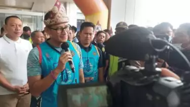 Palembang, Sumatera Selatan - Menteri Pariwisata dan Ekonomi Kreatif (Menparekraf) Sandiaga Salahudin Uno membuka Pekan Olahraga Pariwisata Nasional (Poparnas) pertama yang diselenggarakan Politeknik Pariwisata Palembang.