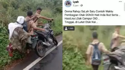 Dalam rekaman video tersebut terlihat sejumlah remaja menggunakan seragam sekolah baju pramuka dengan mengendarai sepeda motor.