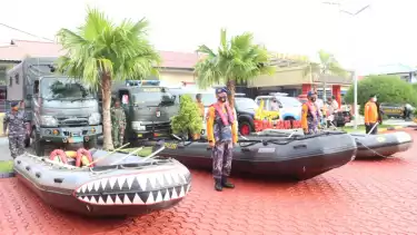 Apel Gabungan Penanggulangan Bencana Polres Karimun, Kendaraan dan Peralatan SAR Dipersiapkan