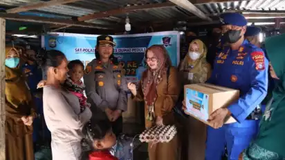 Kapolres Dumai AKBP Nurhadi Ismanto yang diwakili oleh Wakapolres Kompol Josina Lambiombir bersama jajaran mendatangi kediaman sejumlah keluarga penerima manfaat.