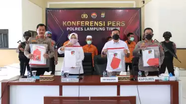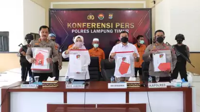 Lampung Timur, Lampung - Polres Lampung Timur membongkar kasus mafia tanah yang melibatkan mantan Kepala Desa Sukadana Timur, IW (50), dan tiga warga Desa Rajabasa Lama, Kecamatan Labuhan Ratu, Lampung Timur, yaitu HS (51), MJ (50) HM (64).