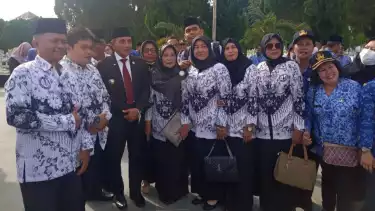 Usai melaksanakan upacara bendera memperingati Hari Guru Nasional, Edy juga berkeliling ke makam pahlawan dan menaburkan bunga. (ayr/wna)
