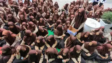 Aceh Barat, Aceh - Ratusan Siswa Madrasah Tsanawiyah aksi simpati dan bela sungkawa terhadap korban gempa Cianjur, Jawa Barat. Selain berdoa bersama, ratusan siswa ini juga menggalang dana untuk membantu para korban gempa khususnya bagi pelajar Cianjur.