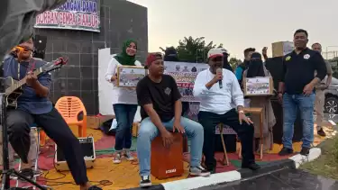 Galang Dana Korban Gempa Cianjur, Bupati Karimun Ikut Bernyanyi Diiringi Musik Akustik di Tugu MTQ Karimun