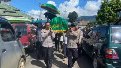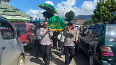 Tak hanya itu, AKBP Arif Harsono pun turut mengangkat keranda jenazah almarhum bersama Kabag Ops AKP Herry Widodo dan lainnya. Prosesi pemakaman dimulai pukul 09.00-10.00 WIB.