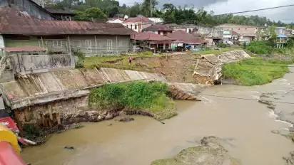 Taput, Sumatera Utara – Dampak gempa magnitudo 5,8 yang mengguncang Kabupaten Tapanuli Utara (Taput), Sumatera Utara, yang terjadi di awal Oktober 2022 lalu belum usai. Kabar terbaru yang diperoleh tvonenews.com, salah satu yang diduga menjadi dampak gempa tersebut adalah tanggul sungai Aek Sigeaon Tarutung mencapai puluhan meter amblas pada, Sabtu (3/12/2022) lalu.