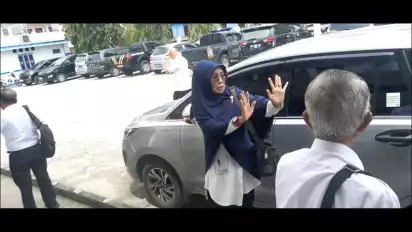 Bahkan, bukan hanya berlari malah melambaikankan kedua tangan, sangking groginya pejabat tersebut sampai-sampai salah menaiki kendaraan mobil yang terparkir di depan gedung itu.