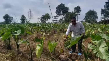"Kita memanfaatkan lahan yang kurang produktif, seluas 2 hektare. Talas Beneng ini mudah sekali untuk dibudidayakan dan tidak susah untuk dipasarkan. Yang kami ambil dari Talas Beneng saat ini yaitu daun, batang dan umbinya. Untuk lahan yang di sini kita menggunakan tanaman tumpang sari, tanaman buah pokat sebanyak 1.500 batang dan pepaya jenis kalina sebanyak 2.000 batang, selain itu juga kami menanam tanaman pangan seperti jagung manis.” Katanya.